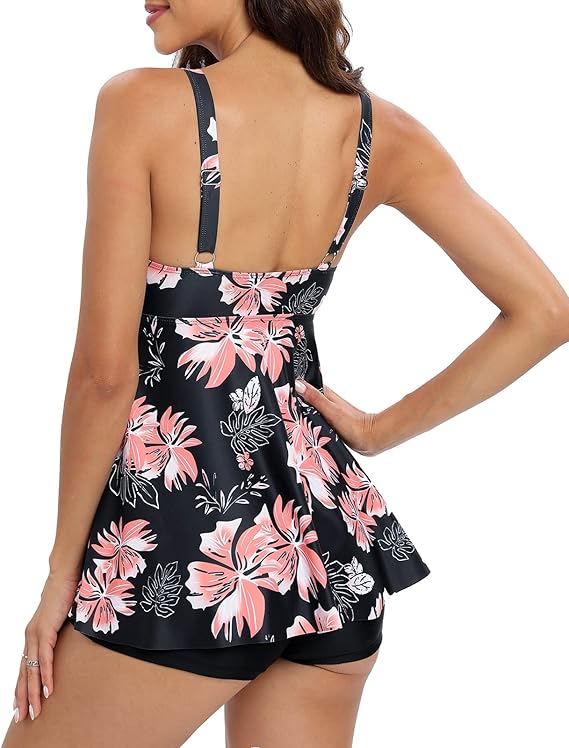 SEAFORM Women’s Tankini Bathing Suits Two-Piece Tummy Control Swim Dress High Waist Printing Padded Swimsuits with Boyshorts