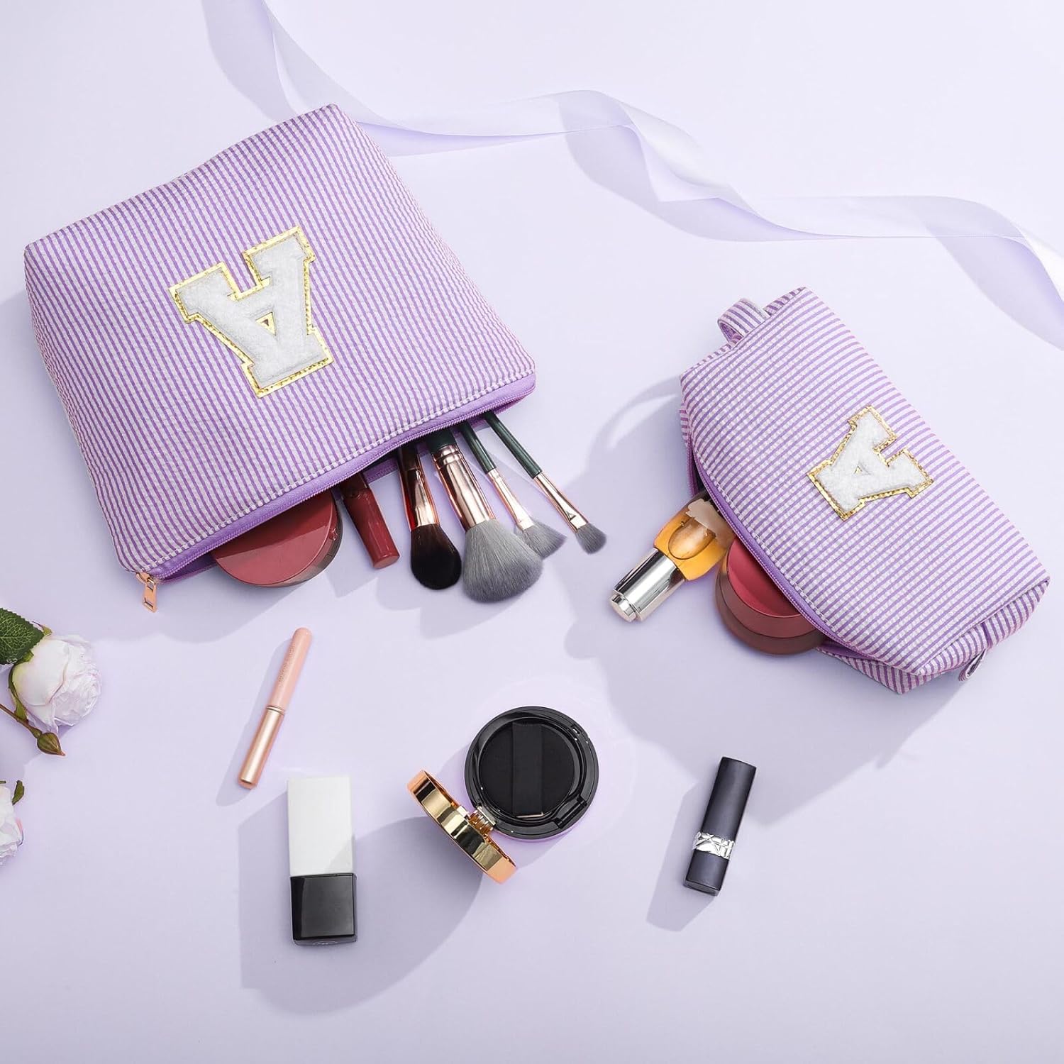 - 【Diverse Options】: The makeup bags offers pink, blue purple green black colors for you and each color have 26 letters; You can choose the color that suits you according to your personal preference and style