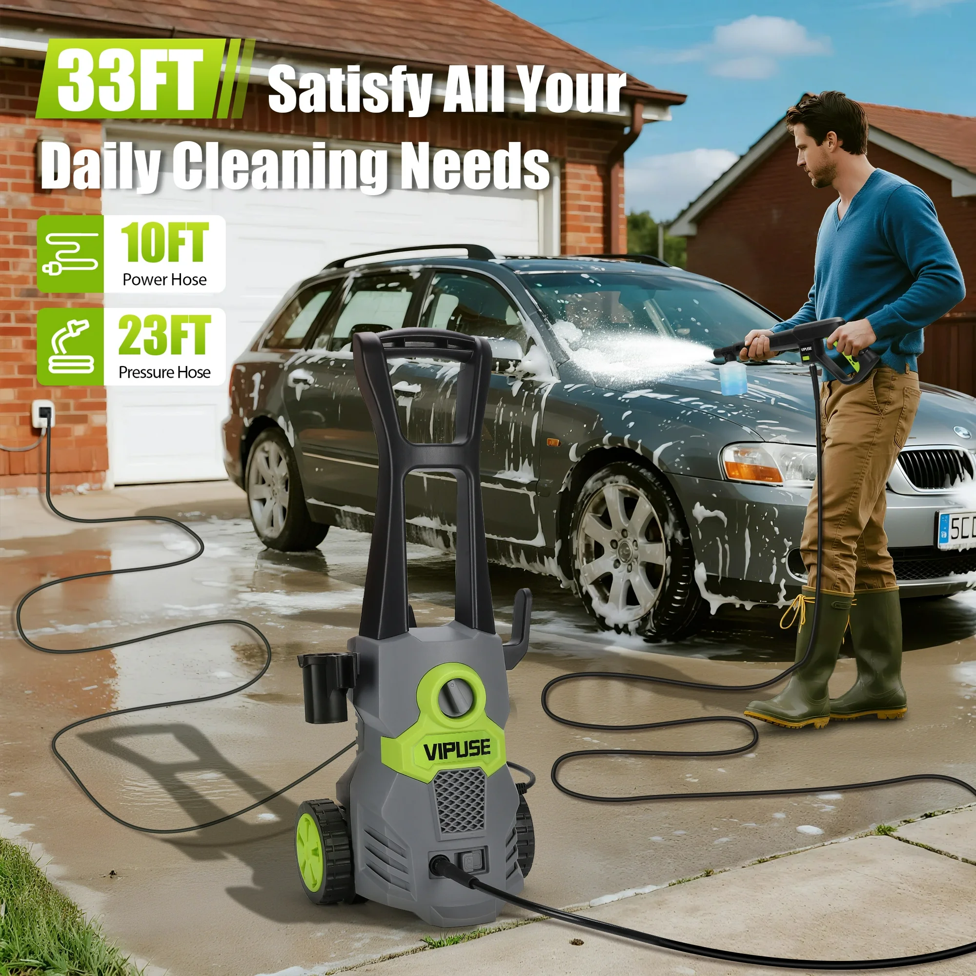 - With a 10ft power cord and a 23ft high-pressure water hose, the electric power washer offers a wide cleaning range, allowing you to reach distant areas without the need for frequent repositioning.