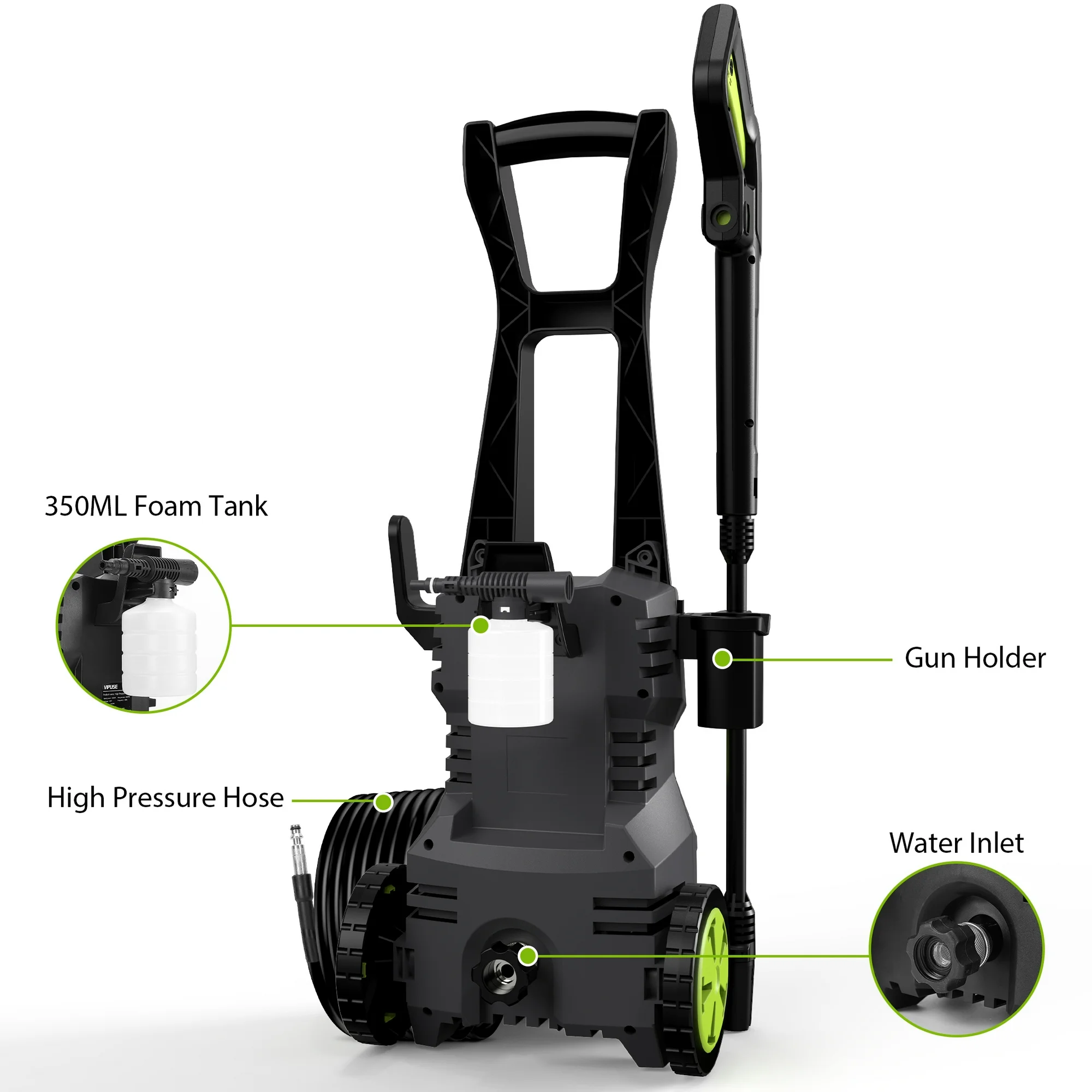 - This electric pressure washer delivers a cleaning performance of max 3000 PSI, ensuring an effective removal of dirt, grime, and stains from various surfaces.