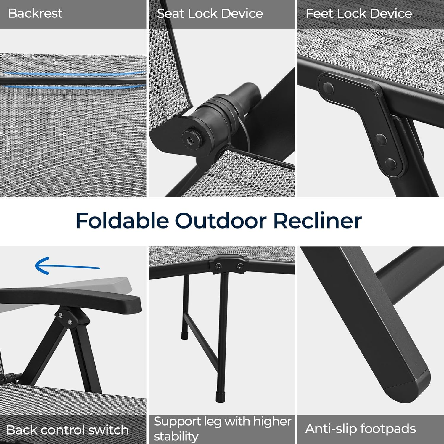 Yaheetech Outdoor Folding Chaise Lounge Set of 2 Patio Reclining Chairs w/Adjustable 7-Position Back for Beach Pool Garden Yard Deck Gray