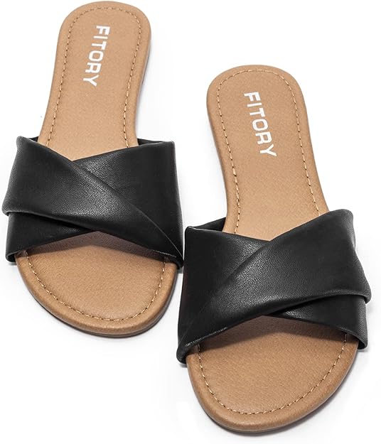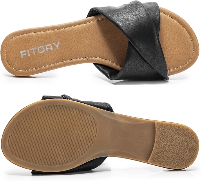 - [Slide-in Comfort] Faux leather+open toe style ,no sweat, keep your feet refreshing in the hot days,easy to wear and take off.