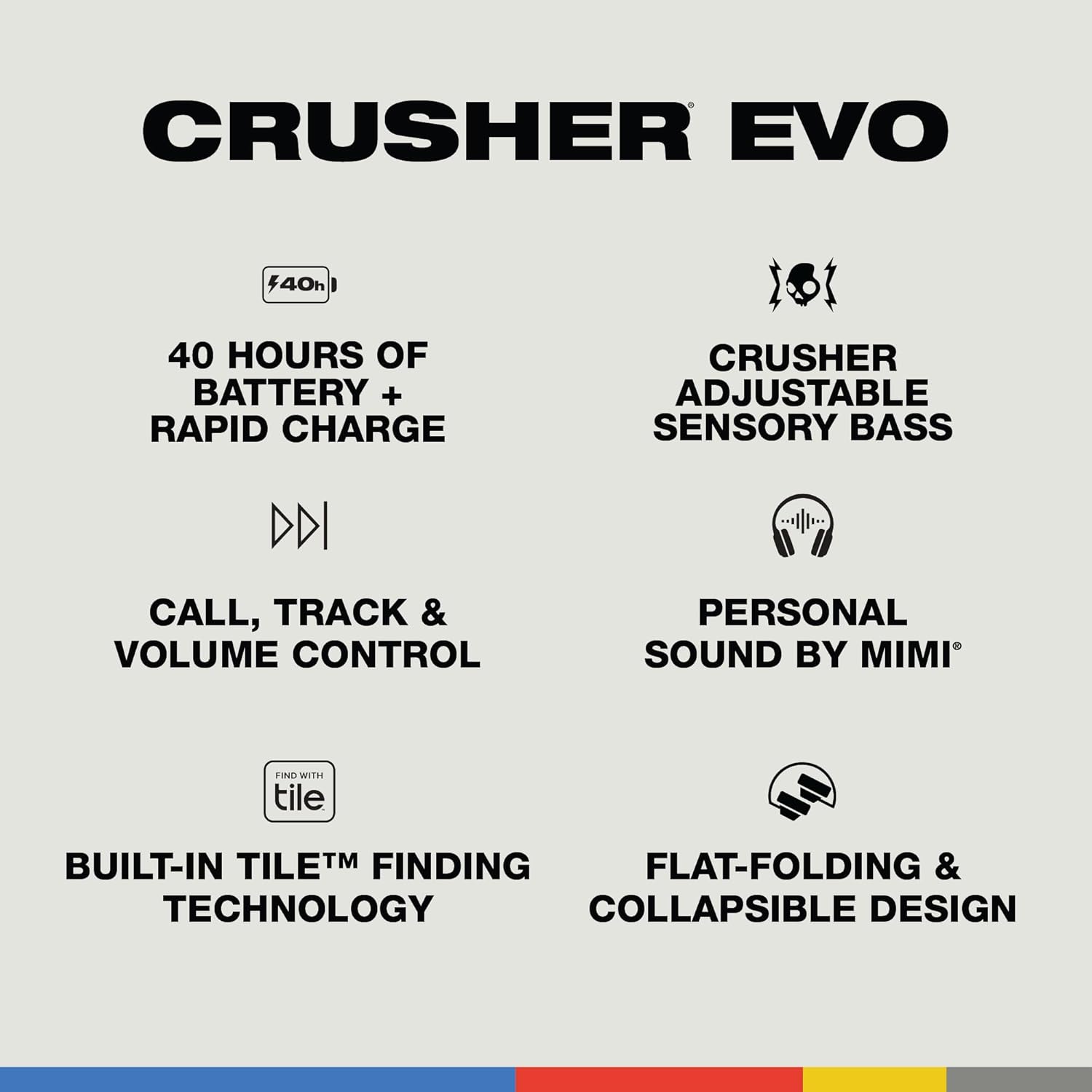 • Feel the bass tuned to you – Listen to songs the way they were made to be heard. With the Personal Sound feature, the Crusher Evo analyzes your hearing and produces sound specifically for YOU