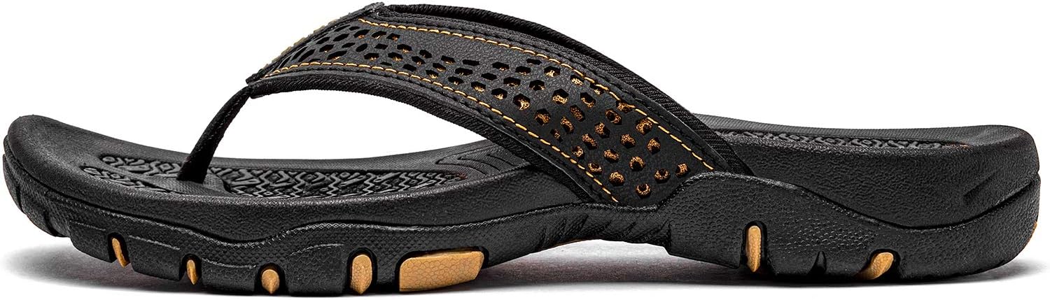 • Fantastic arch support: Mens flip flops with thick cushioned sole and rugged foot bed have supplies great traction for handle long walks.