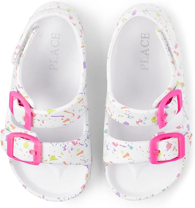 - DESIGN — Features buckle straps and rainbow paint splatter print