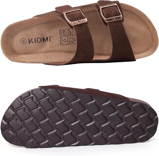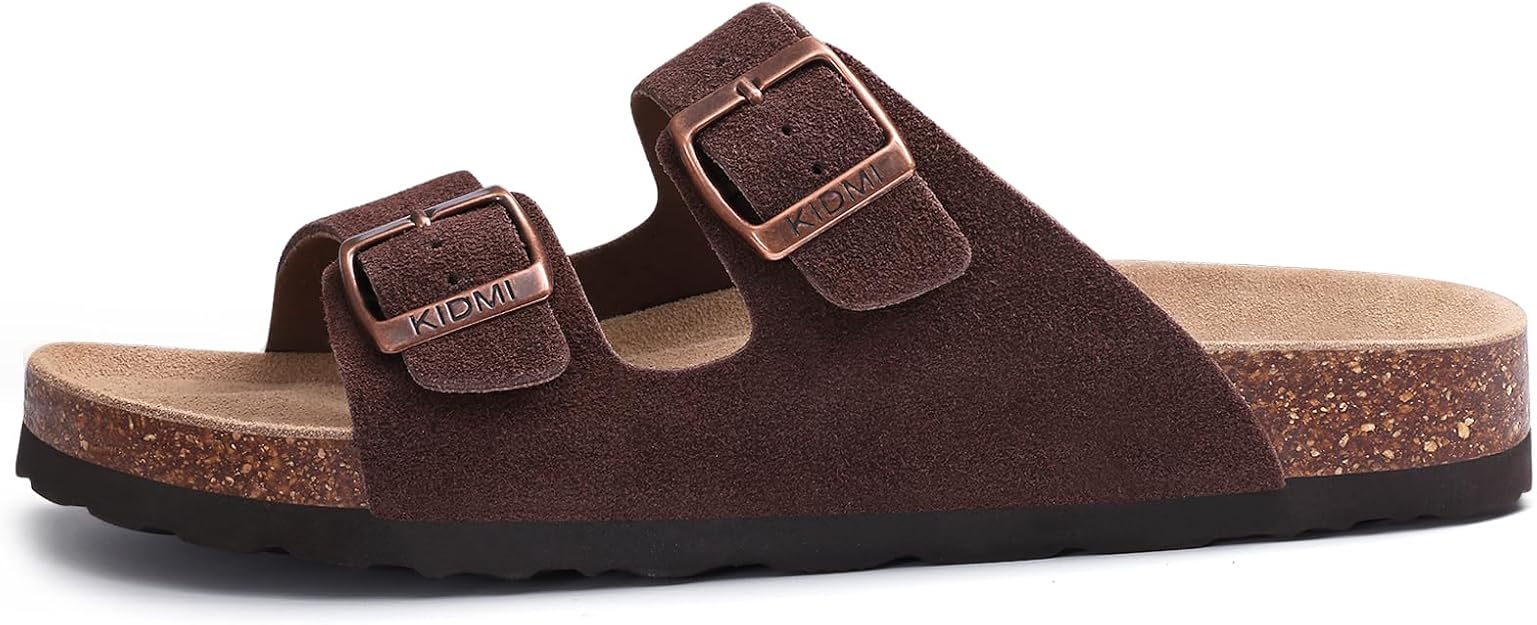 KIDMI Women’s Genuine Suede Sandals Cork Footbed Summer Adjustable Slide Sandals
