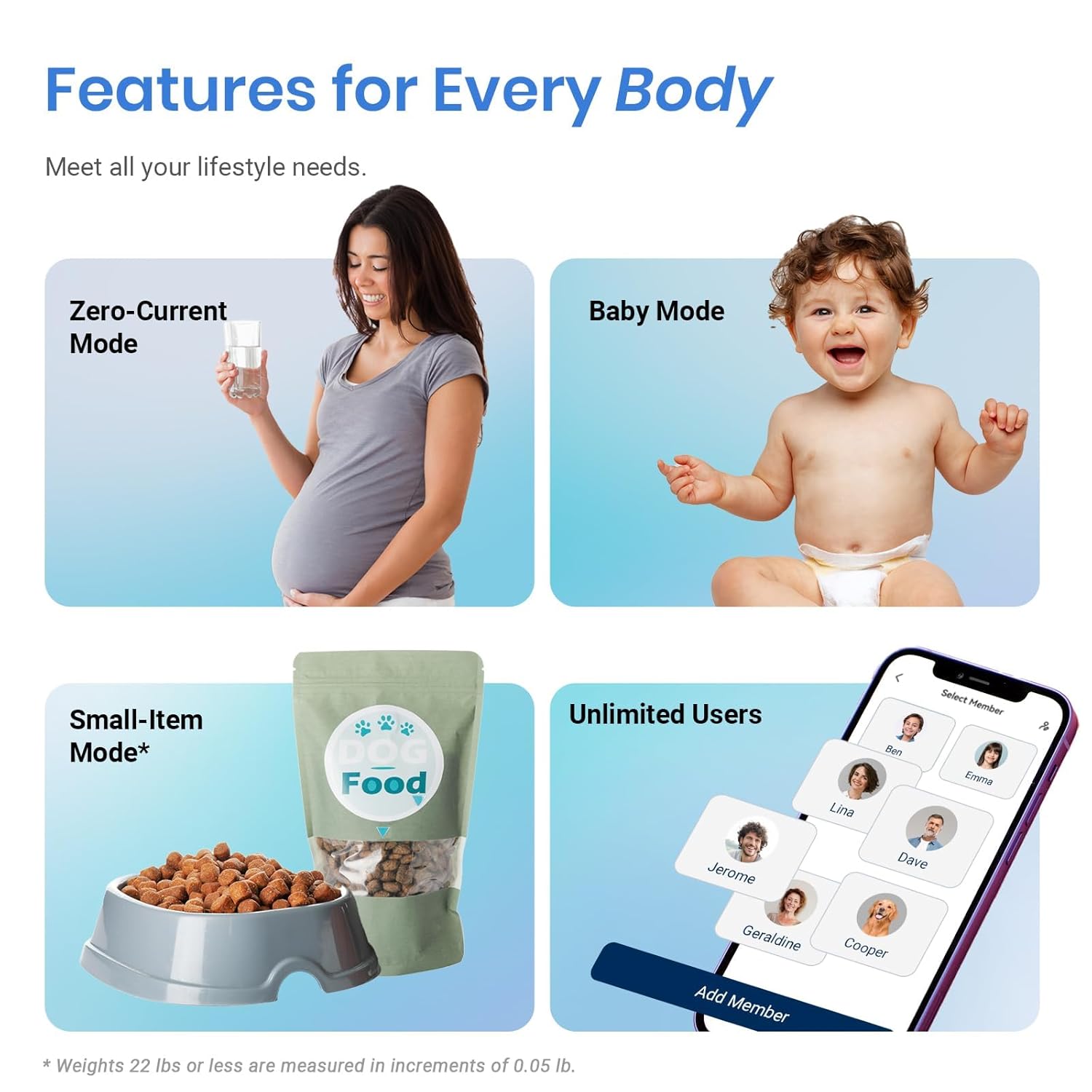 - π½ππππππππ πΎπππππππ πΊπππππππ: Our scale offers 3 different modes designed to cater to all your needs. Zero-Current Mode ensures a safe weigh-in option, Baby Mode tracks baby or pet growth, and For Light Items weighs items as light as 100g