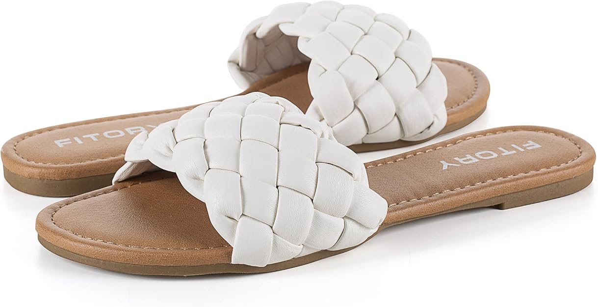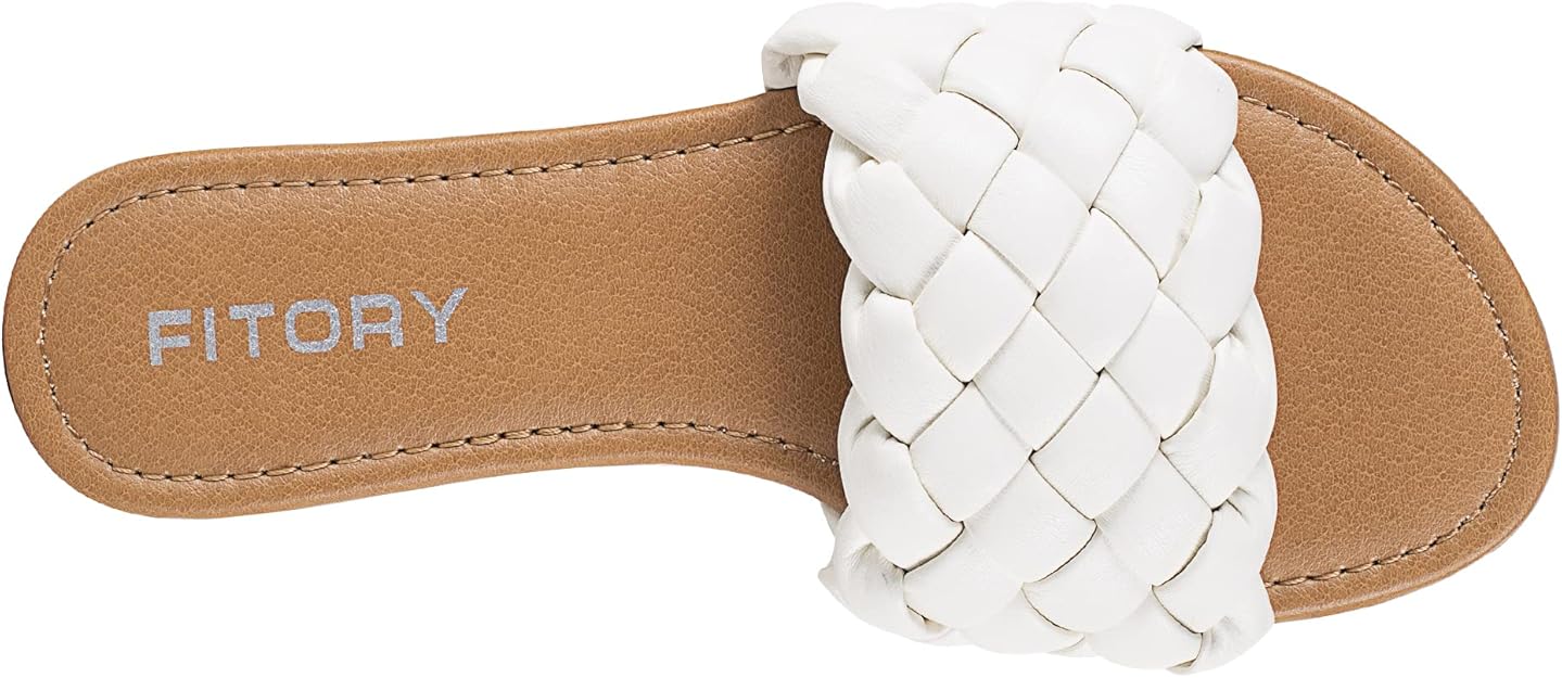 FITORY Womens Flat Sandals Fashion Round Open Toe Slip On Slides with Braided Strap Slippers for Summer Size 6-11