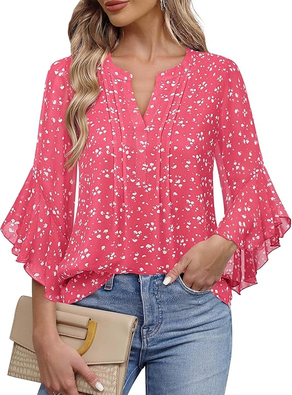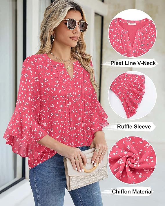 - 3/4 RUFFLE SLEEVE DESIGN – The sleeves are designed with a unique cut of flared ruffled cuffs, which are light and airy.The 3/4 sleeve length is just right to cover our upper arm and elbow, which easily covers our big arm.The ruffled cuffs can also set off our slim little arm, lengthening our arm line and making you look more beautiful and attractive.