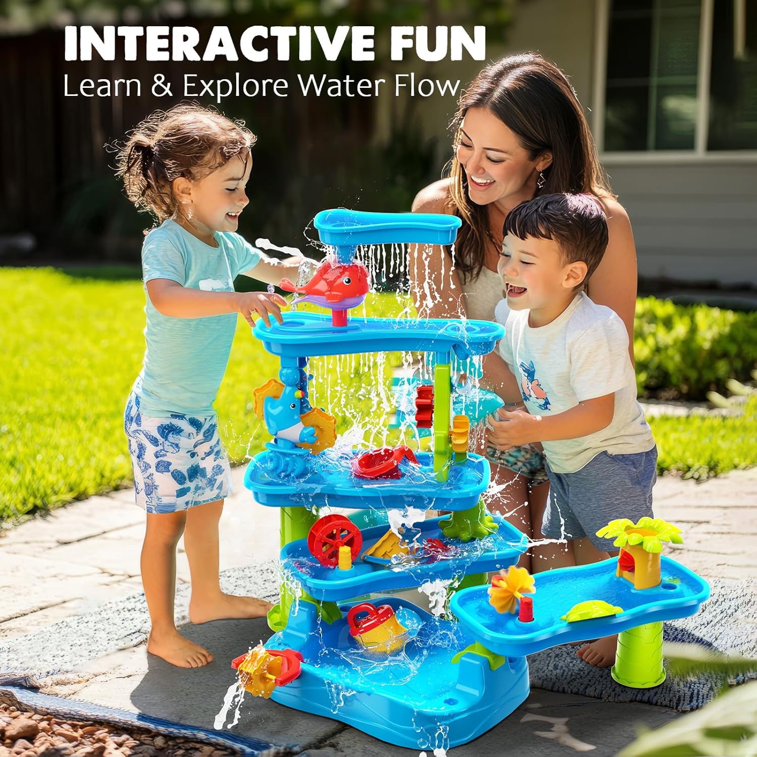 - 🌊ENDLESS WATER FUN | Dive into excitement with our water table for toddlers. Features interactive water wheel, splash bucket, and magnetic fishing toys, perfect for sensory play and outdoor fun in the backyard or poolside.