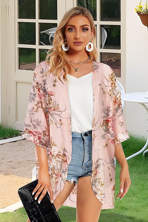 - Womens Floral tops like this kimono cardigans, open front beach coverups, Dress as bathing suit shawl has a bit of give to make for a great fit. you’ll land on a beautiful fitting shrug capes to complement your shape and style .